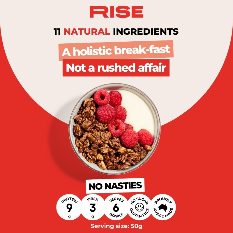 Even though Breakfast Rise looks and tastes like most cereals you’ll find at the grocery store, nutritionally, it’s lightyears ahead. Think of Breakfast Rise as more of a high-end protein